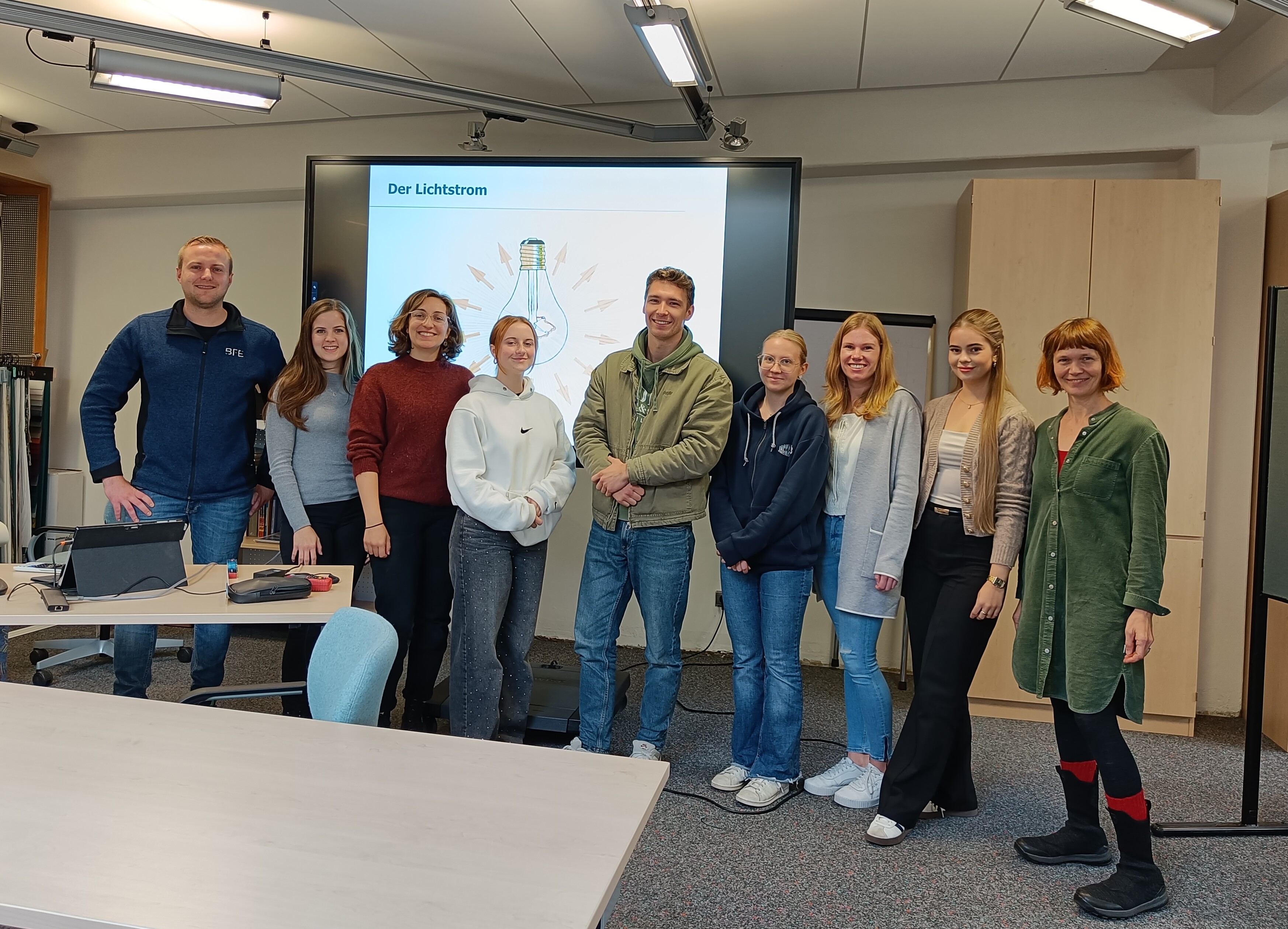 Im Seminarraum 3 liegen anstelle von Stoffen und Farbmustern nun Luxmeter bereit, und auf dem Smartboard sind Abbildungen von Lichtstärkeverteilungskurven zu sehen. Hintergrund für diese neue Herangehensweise ist der aktualisierte Rahmenlehrplan, der das Thema „Licht“ für Raumausstatterinnen und Raumausstatter integriert. Ein Bereich, der eigentlich zur Elektrotechnik gehört. Doch Anette Löhr, Dozentin der Raumausstatterschule der Handwerkskammer Oldenburg, sieht darin eine wertvolle Chance für den Austausch zwischen den Gewerken: „Da Licht eine wichtige Rolle für die Inszenierung von Räumen spielt, ist es für die angehenden Meisterinnen und Meister umso wichtiger, die grundlegenden Zusammenhänge zu kennen und anzuwenden. Auch für Elektrotechnikerinnen und Elektrotechniker eröffnet der Austausch neue Einblicke, die bei der Zusammenarbeit sehr hilfreich sein können. So entsteht aus vielen Einzelelementen ein harmonisches Gesamtbild.“