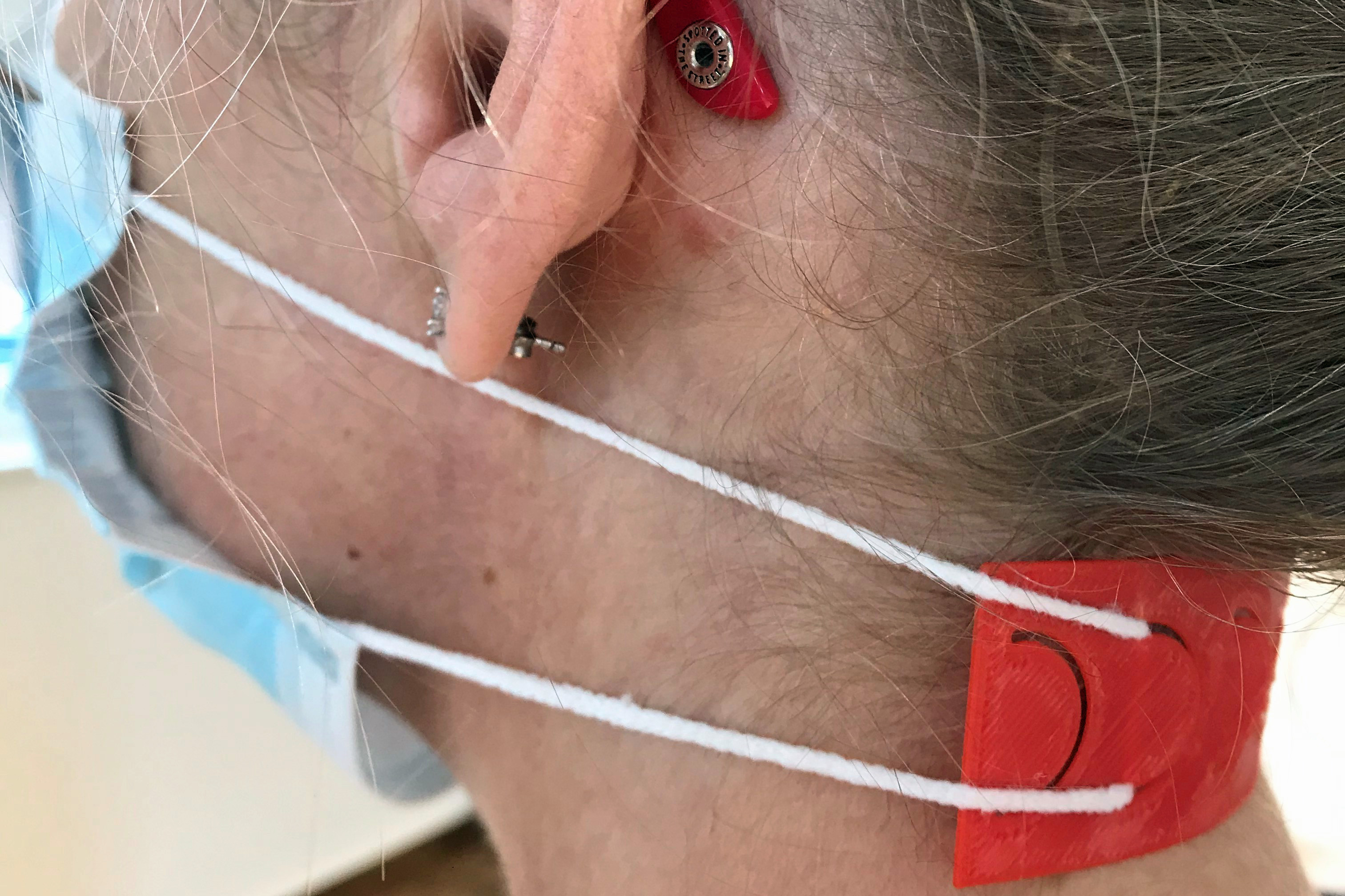 Die Maskenpflicht stört Brillen- und vor allem Hörgeräteträger teilweise empfindlich. Beim Abnehmen der Maske kommt es nämlich immer wieder zu Problemen. Laura Scherbarth von OTON Oldenburg hatte beispielsweise schon mehrere Kunden, die gar nicht gemerkt hatten, dass ihr Hörgerät an der Maskenschnur festhing und es dann beim Abnehmen verloren haben. "In dieser Zeit habe ich einen Artikel über die Wardenburger Firma Nordwest-Box gelesen. Dort habe ich angefragt, ob man mir bei einem speziellen Maskenhalter helfen kann.“