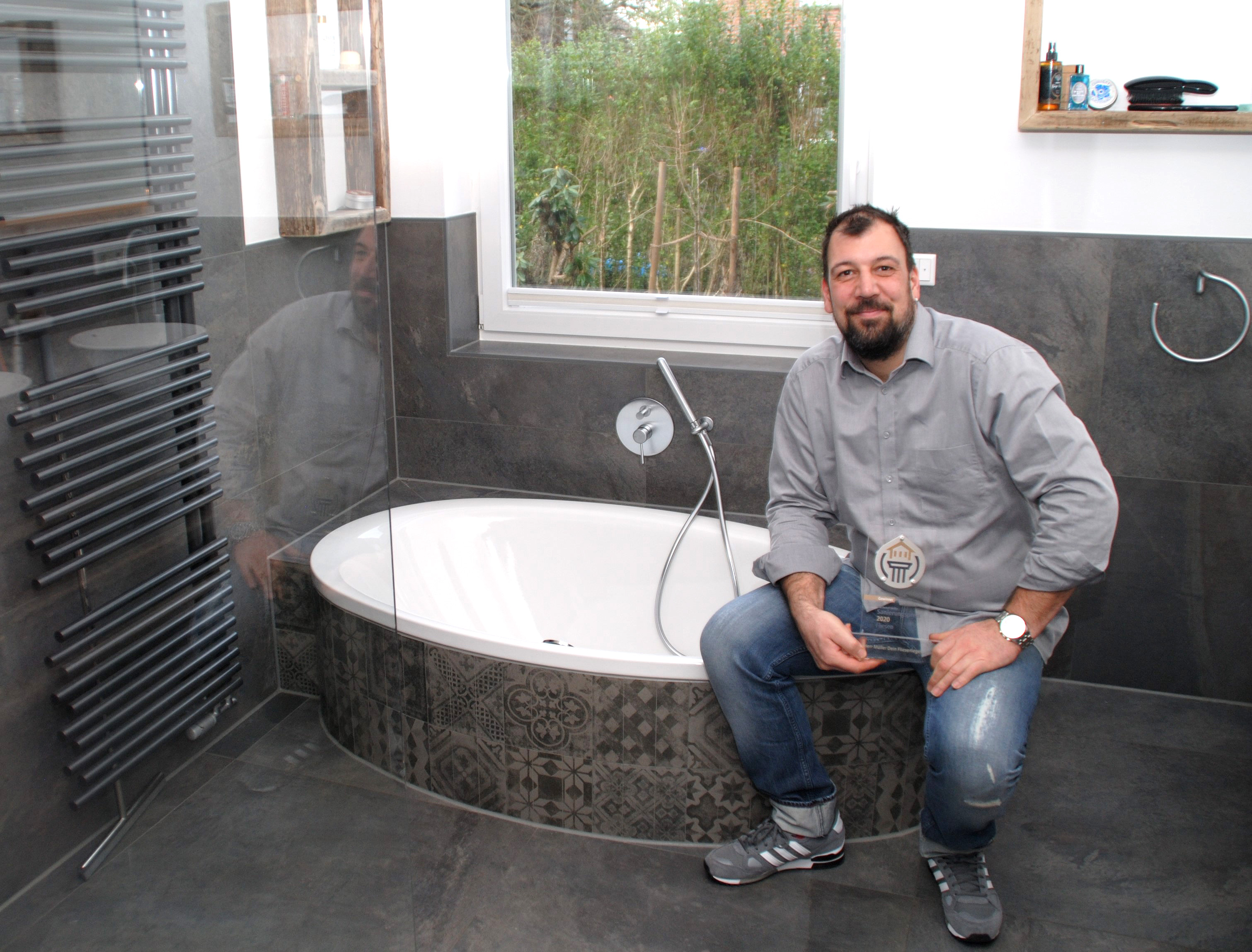 Eine Premiere konnte auch die erstmals vertretene Kategorie Fliesen feiern. Stolzer Gewinner ist Fliesenlegermeister Michèl Müller von „Herr Müller - Dein Fliesenleger“ aus Oldenburg. Mit einer exklusiven Badsanierung in einem Privathaus konnte Müller die Jury überzeugen und sich gegen 13 Mitbewerber durchsetzen. Und Müller zeigte sich nicht nur stolz, sondern auch überrascht: „Ich hatte mir, während die Bewerbungsphase noch lief, auf der Internetseite die anderen Projekte angeschaut. Da waren schon einige sehr gute dabei, und ich hatte nicht geglaubt, dass ich große Chancen auf den ersten Preis hätte.“